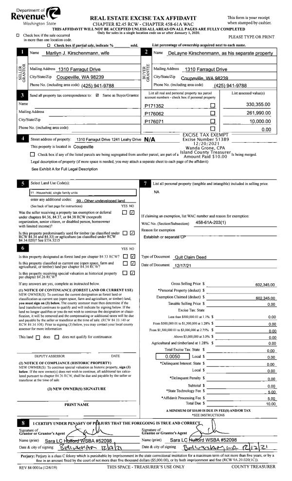 | Mailing Address: | JOANNE CONNELL ROMANN 1271 S EAST CAMANO DR CAMANO ISLAND, WA 98282-8441 | % Ownership: | 100.0000000000% |