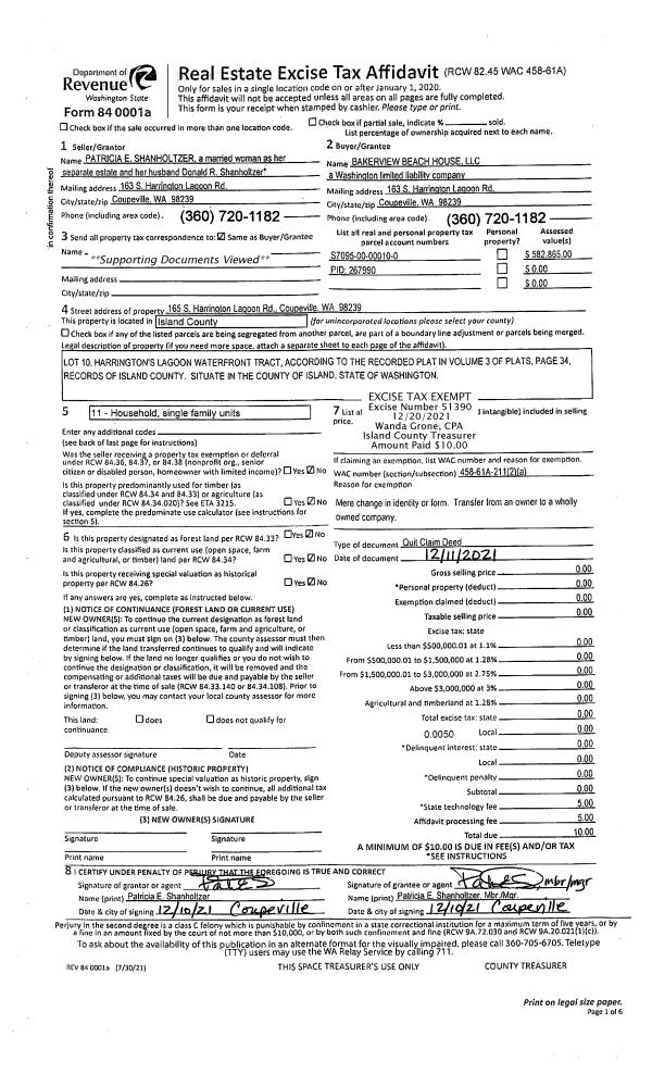| Mailing Address: | SIMONE E STAHL 1262 HOLLOWAY LN CAMANO ISLAND, WA 98282-7666 | % Ownership: | 100.0000000000% |