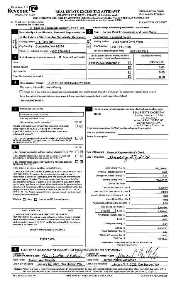 | Mailing Address: | MERIATEN REBECCA LONG 1259 HOLLOWAY LN CAMANO ISLAND, WA 98282 | % Ownership: | 100.0000000000% |