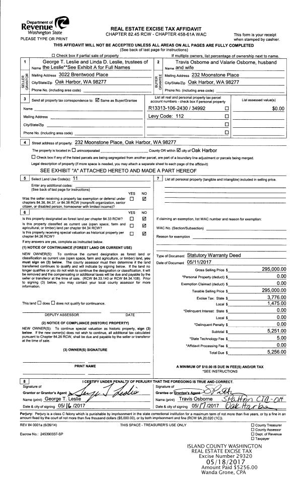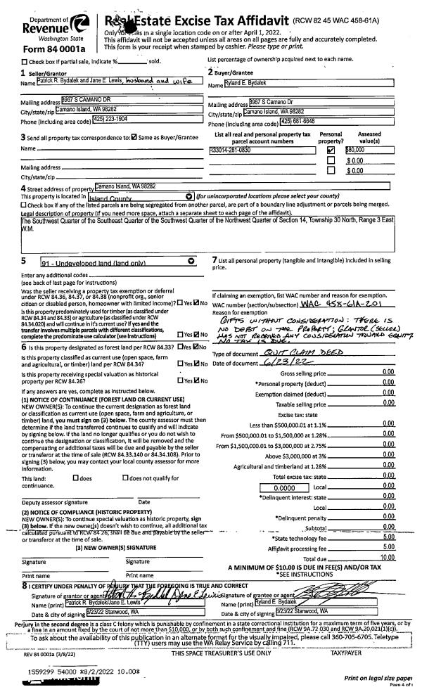 | Mailing Address: | 1376 COUNTRY CLUB DRIVE CAMANO ISLAND, WA 98282 | % Ownership: | 100.0000000000% |