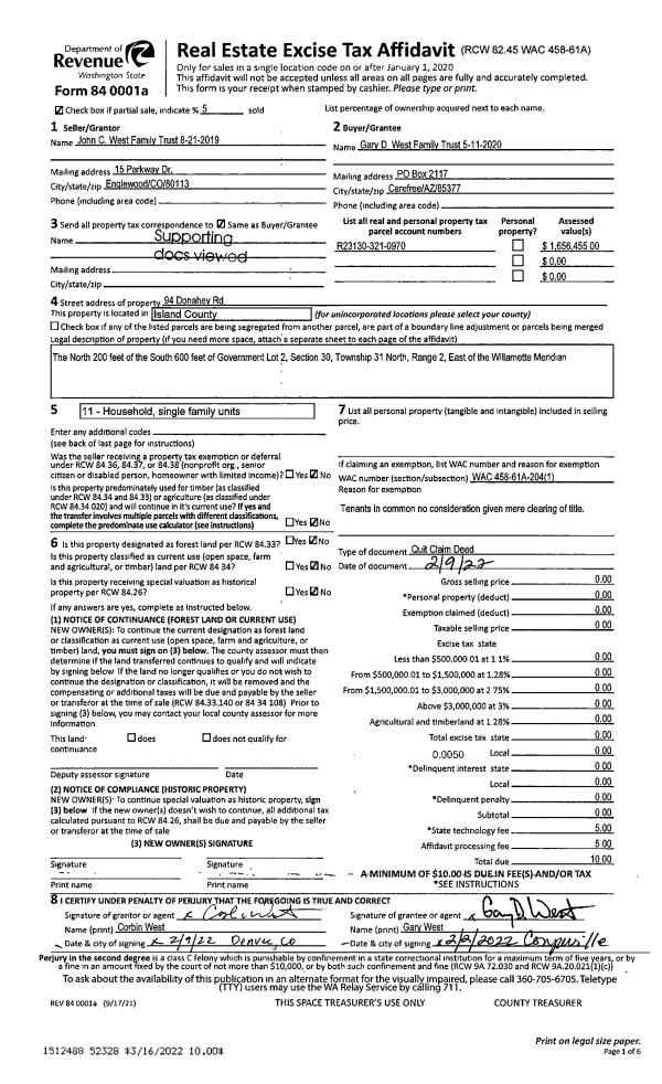 | Mailing Address: | DEANNA KING TTEE 1283 SE CAMANO DR CAMANO ISLAND, WA 98282 | % Ownership: | 100.0000000000% |