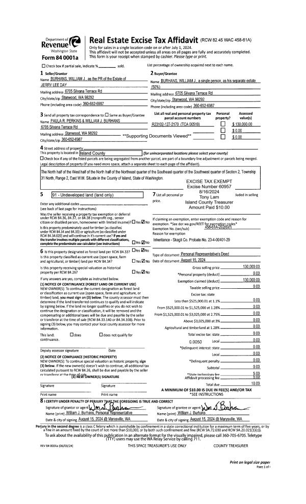 | Mailing Address: | CLAIRE M CASE 1725 HASTIE LAKE RD OAK HARBOR, WA 98277 | % Ownership: | 100.0000000000% |