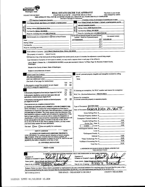 | Mailing Address: | CARLA F BOWEN 1532 SE CAMANO DR CAMANO ISLAND, WA 98282 | % Ownership: | 100.0000000000% |