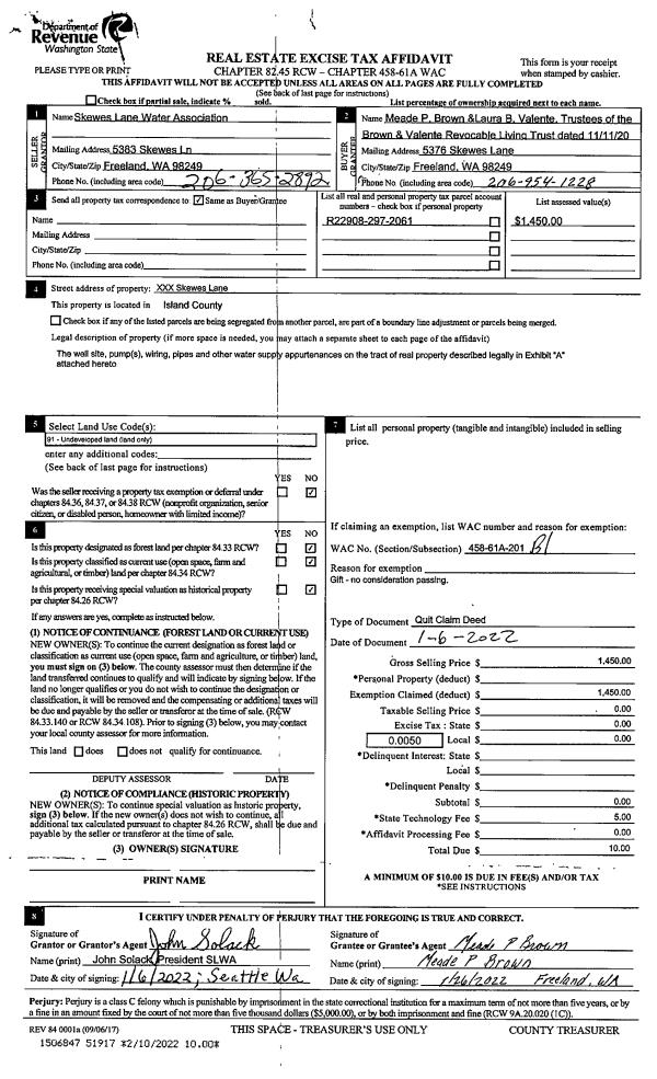 | Mailing Address: | 1492 SOUTHEAST CAMANO DR CAMANO ISLAND, WA 98282 | % Ownership: | 100.0000000000% |