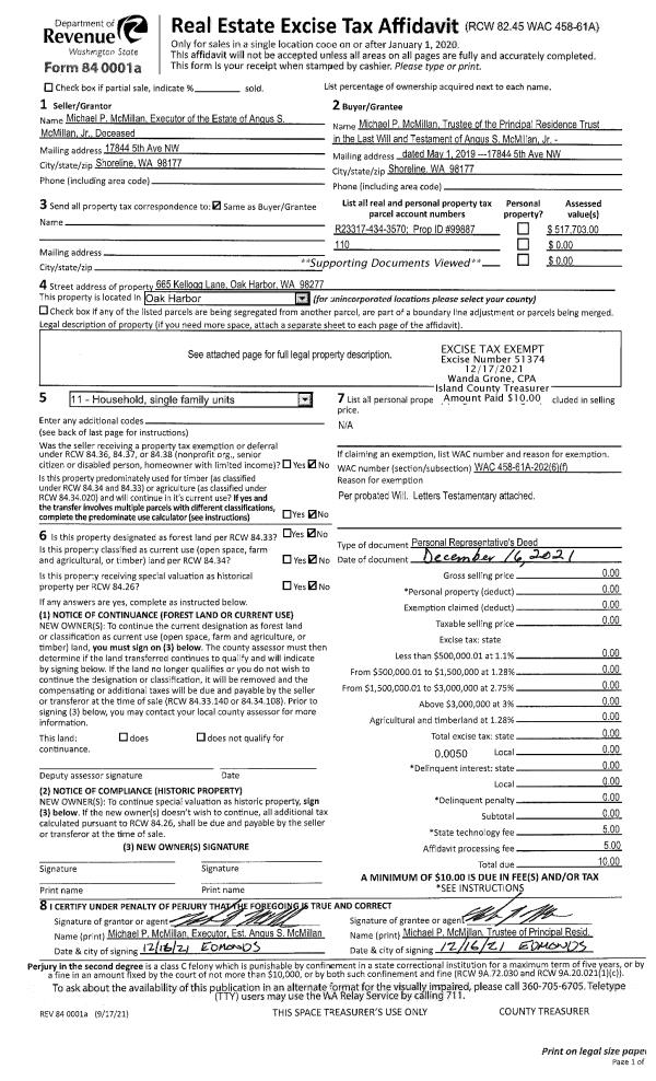 | Mailing Address: | 1367 RAINBOW LN CAMANO ISLAND, WA 98282 | % Ownership: | 100.0000000000% |
