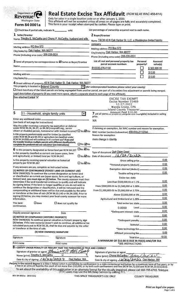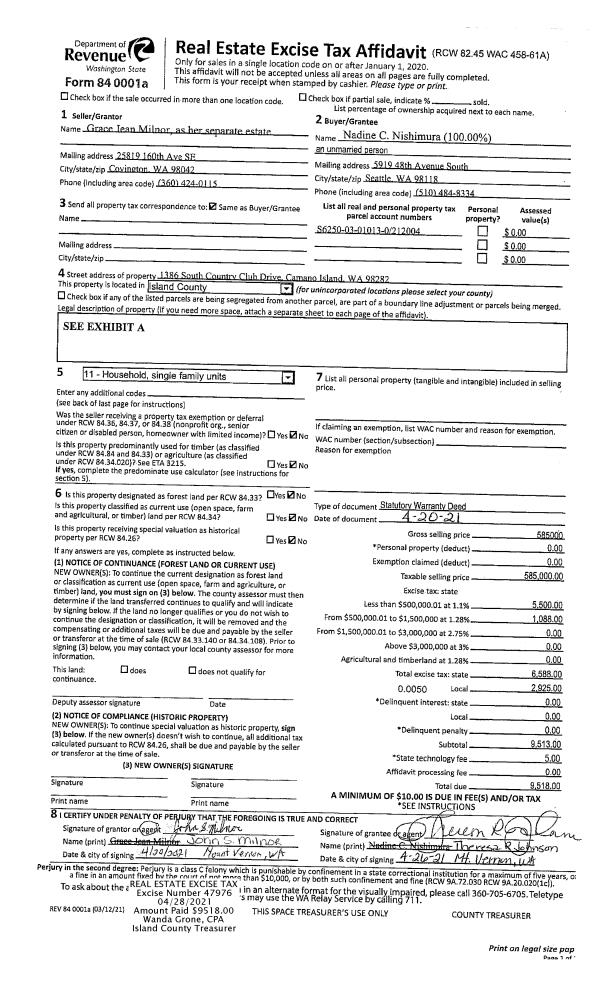 | Mailing Address: | ORION MCNYSET 1335 RAINBOW LN CAMANO ISLAND, WA 98282 | % Ownership: | 100.0000000000% |