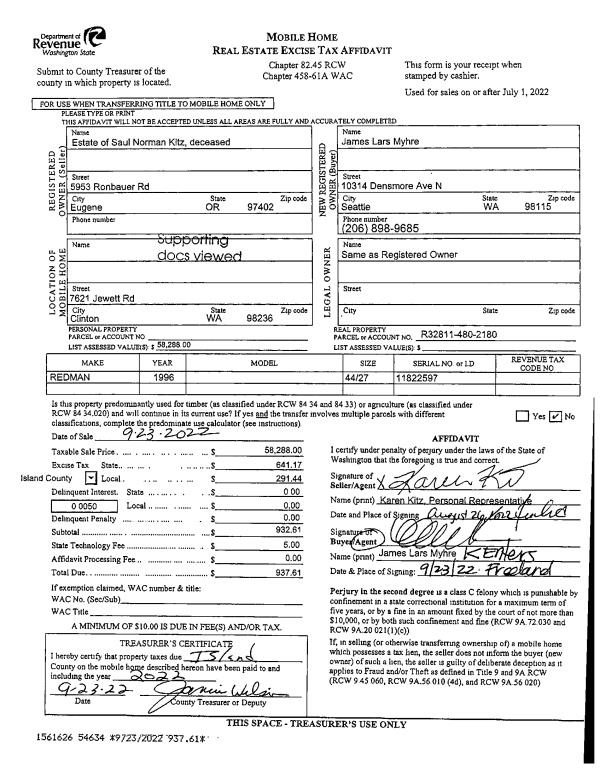 | Mailing Address: | 1249 MOUNT BAKER AVE CAMANO ISLAND, WA 98282 | % Ownership: | 100.0000000000% |