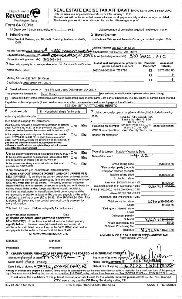 | Mailing Address: | 1259 MT BAKER AVE CAMANO ISLAND, WA 98282-8439 | % Ownership: | 100.0000000000% |