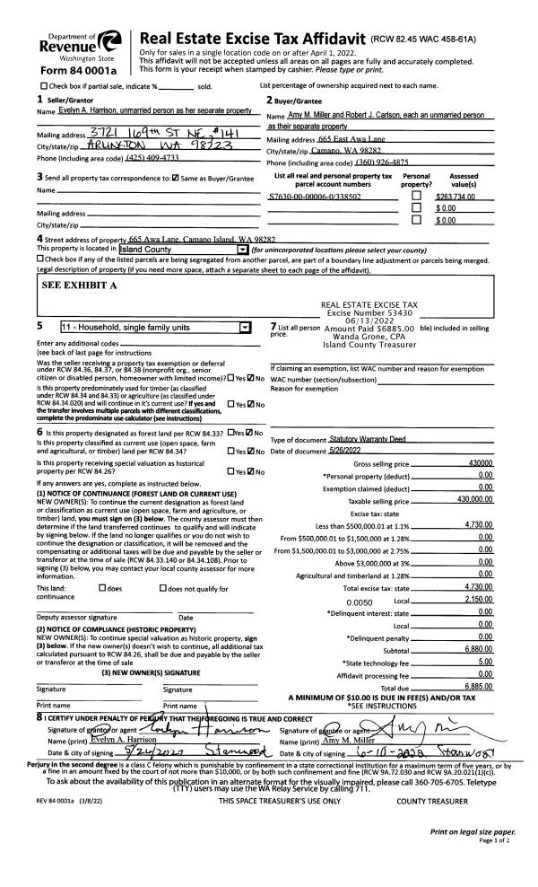 | Mailing Address: | 1970 CASCADE VIEW DR CAMANO ISLAND, WA 98282 | % Ownership: | 100.0000000000% |