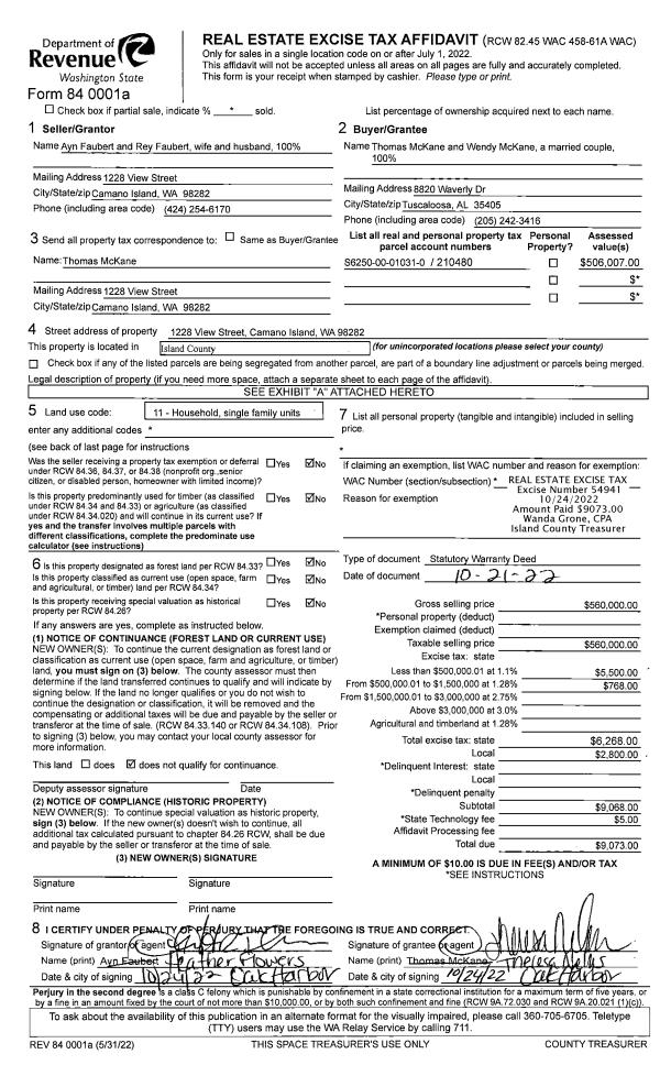 | Mailing Address: | 1905 CASCADE VIEW DR CAMANO ISLAND, WA 98282 | % Ownership: | 100.0000000000% |