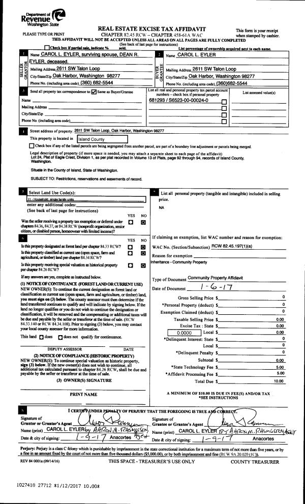 | Mailing Address: | 1924 SE CAMANO DR CAMANO ISLAND, WA 98282 | % Ownership: | 100.0000000000% |