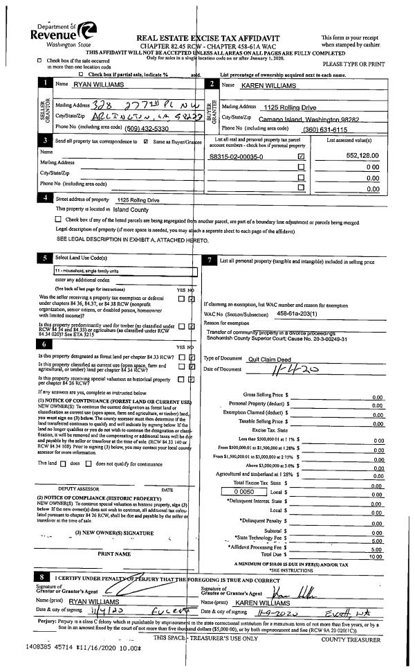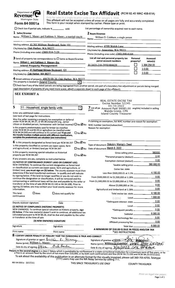 | Mailing Address: | 1916 S EAST CAMANO DR CAMANO ISLAND, WA 98282 | % Ownership: | 100.0000000000% |