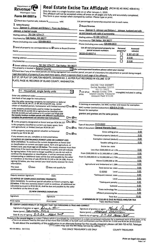 | Mailing Address: | LISA L NORDIN 1882 S EAST CAMANO DR CAMANO ISLAND, WA 98282-7638 | % Ownership: | 100.0000000000% |