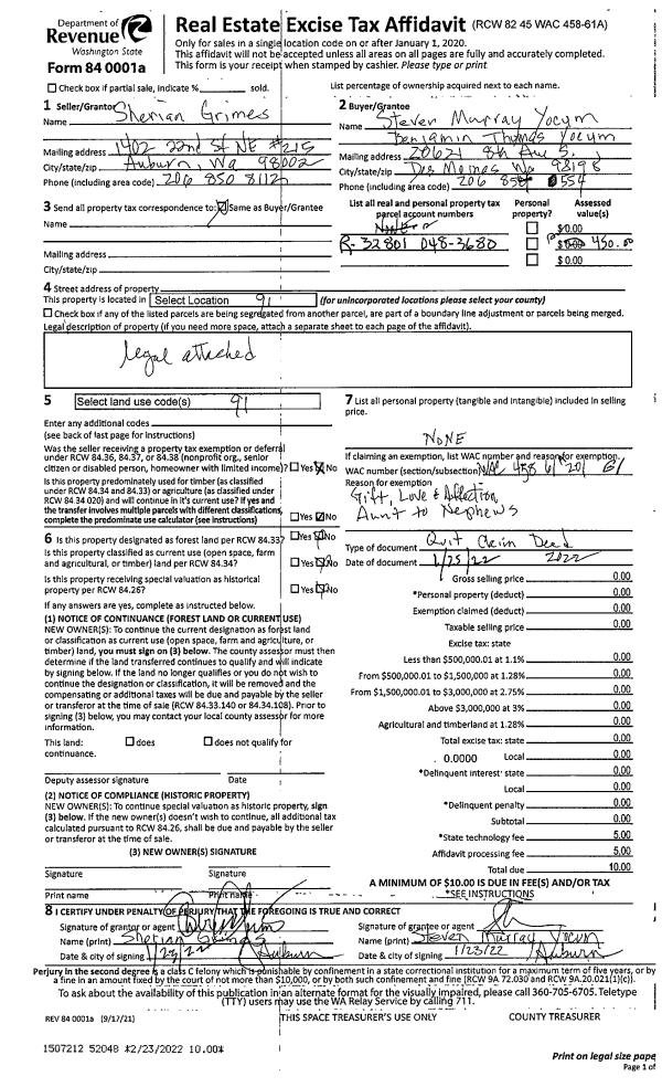 | Mailing Address: | 436 MARINEM VIEW PL CAMANO ISLAND, WA 98282 | % Ownership: | 100.0000000000% |