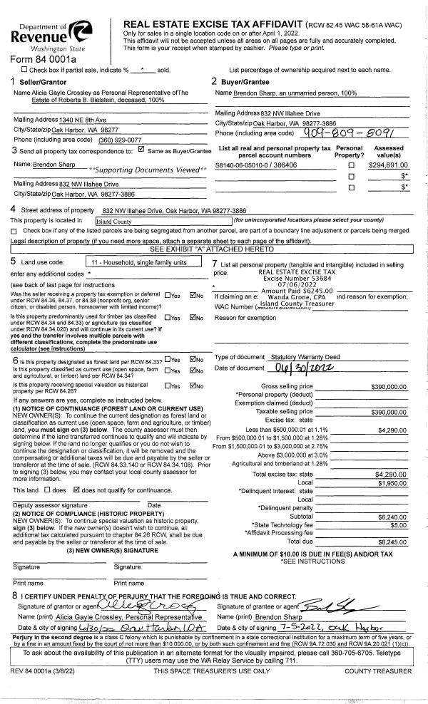 | Mailing Address: | 476 MARINE VIEW PLACE CAMANO ISLAND, WA 98282-7695 | % Ownership: | 100.0000000000% |