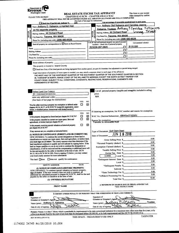 | Mailing Address: | 1873 ELHARDT ST CAMANO ISLAND, WA 98282 | % Ownership: | 100.0000000000% |