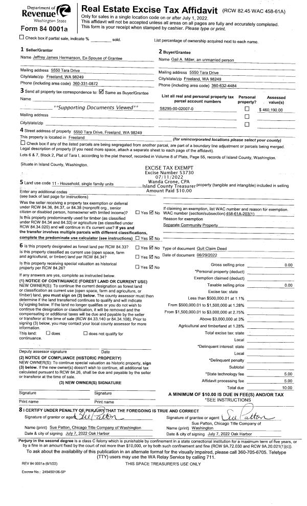 | Mailing Address: | KRISTINA HUTCHINSON 1998 EDGEWOOD DR CAMANO ISLAND, WA 98282-7697 | % Ownership: | 100.0000000000% |