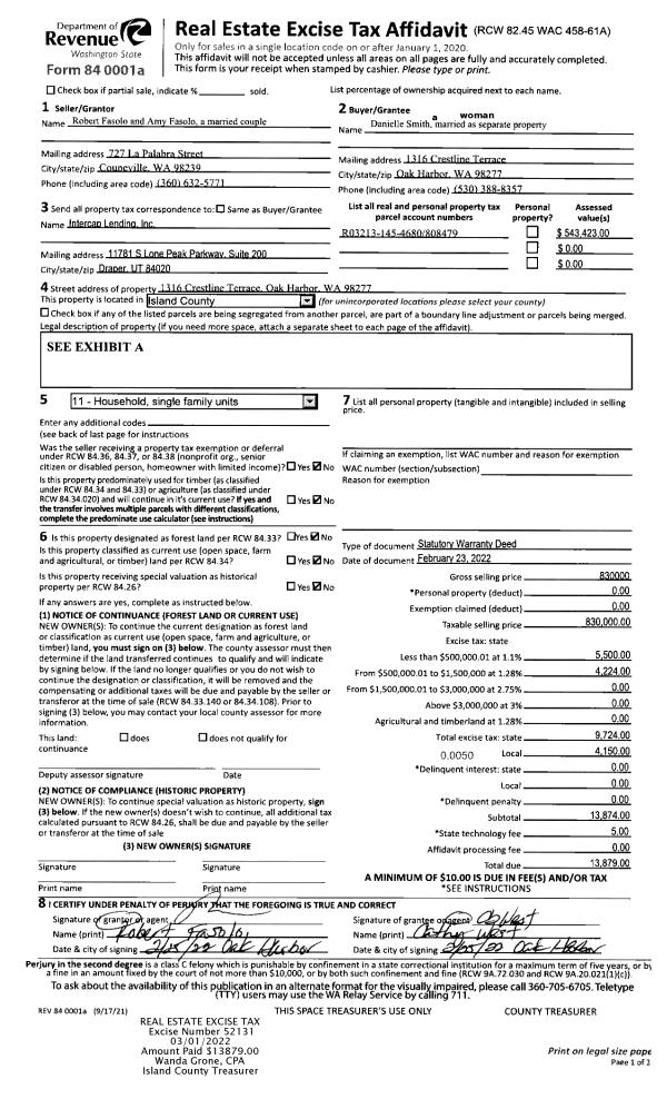 | Mailing Address: | 1959 ELHARDT ST CAMANO ISLAND, WA 98282 | % Ownership: | 100.0000000000% |