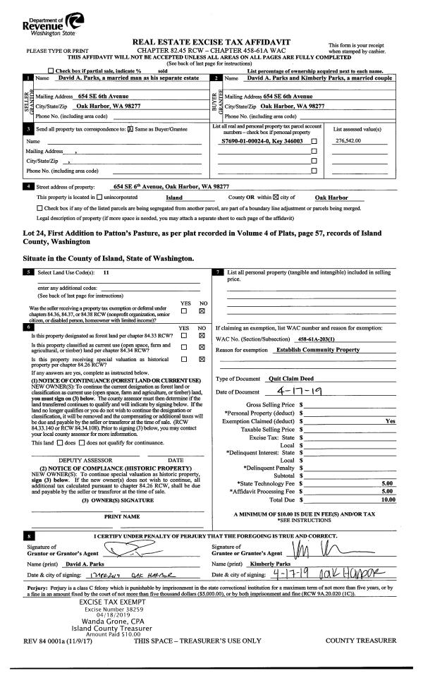 | Mailing Address: | JULIE TROUTVINE 1933 ELHARDT ST CAMANO ISLAND, WA 98282 | % Ownership: | 100.0000000000% |