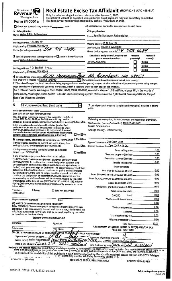 | Mailing Address: | 1990 ELHARDT ST CAMANO ISLAND, WA 98282 | % Ownership: | 100.0000000000% |
