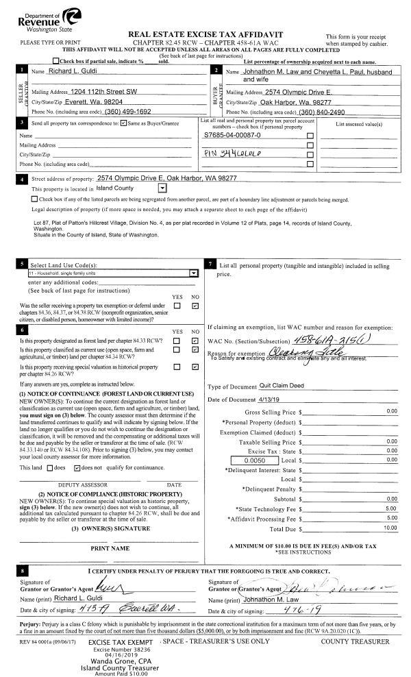 | Mailing Address: | GEORGE WILLIAM KREPPEIN 1549 CAROL ST CAMANO ISLAND, WA 98282 | % Ownership: | 100.0000000000% |