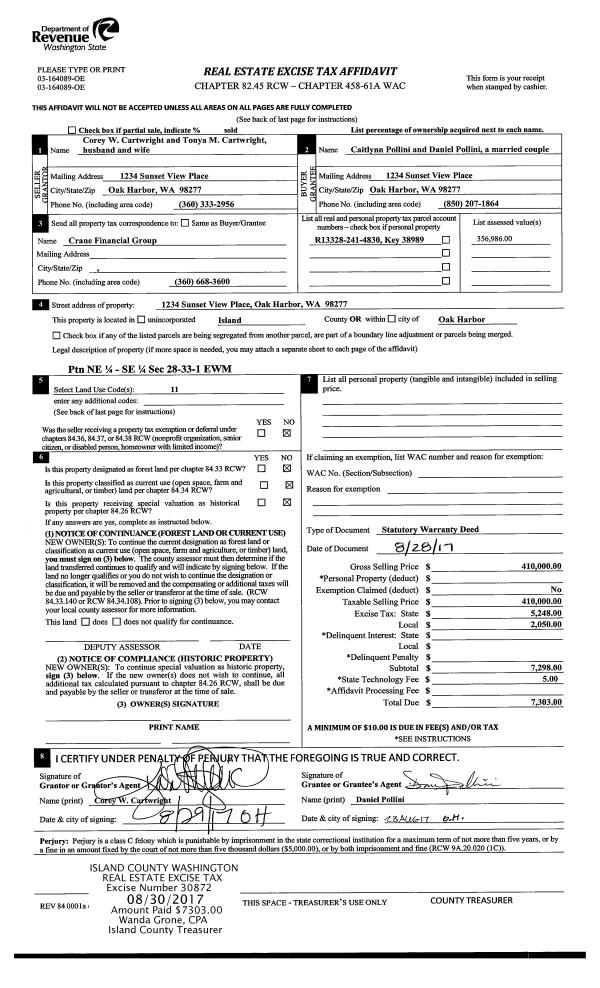 | Mailing Address: | 1503 CAROL ST CAMANO ISLAND, WA 98282 | % Ownership: | 100.0000000000% |
