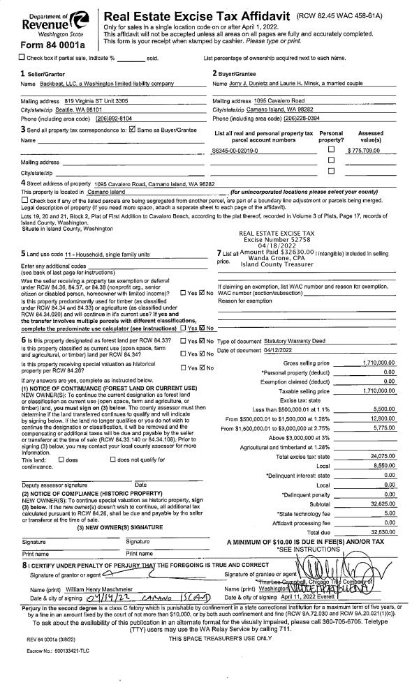 | Mailing Address: | 1548 CAROL STREET CAMANO ISLAND, WA 98282 | % Ownership: | 100.0000000000% |