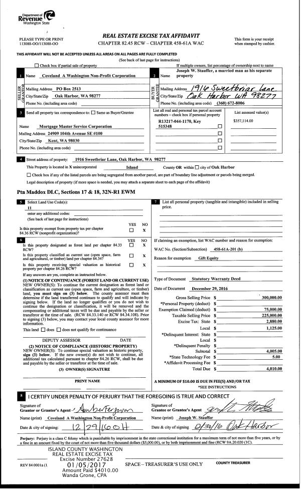 | Mailing Address: | M PATRICIA MILLER 1525 THOMPSON DR CAMANO ISLAND, WA 98282 | % Ownership: | 100.0000000000% |