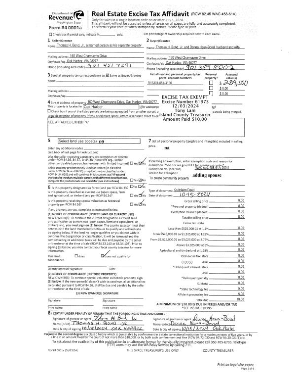 | Mailing Address: | 1473 CRESTVIEW DR CAMANO ISLAND, WA 98282 | % Ownership: | 100.0000000000% |