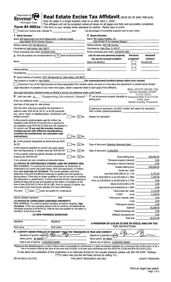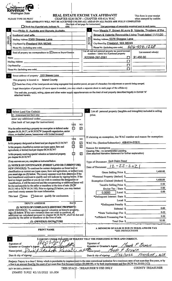 | Mailing Address: | TERESA L BRUCE 1443 CREST VIEW DR CAMANO ISLAND, WA 98282 | % Ownership: | 100.0000000000% |