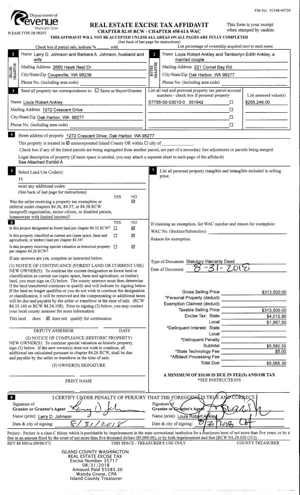 | Mailing Address: | 2020 HASTIE LAKE RD OAK HARBOR, WA 98277 | % Ownership: | 100.0000000000% |