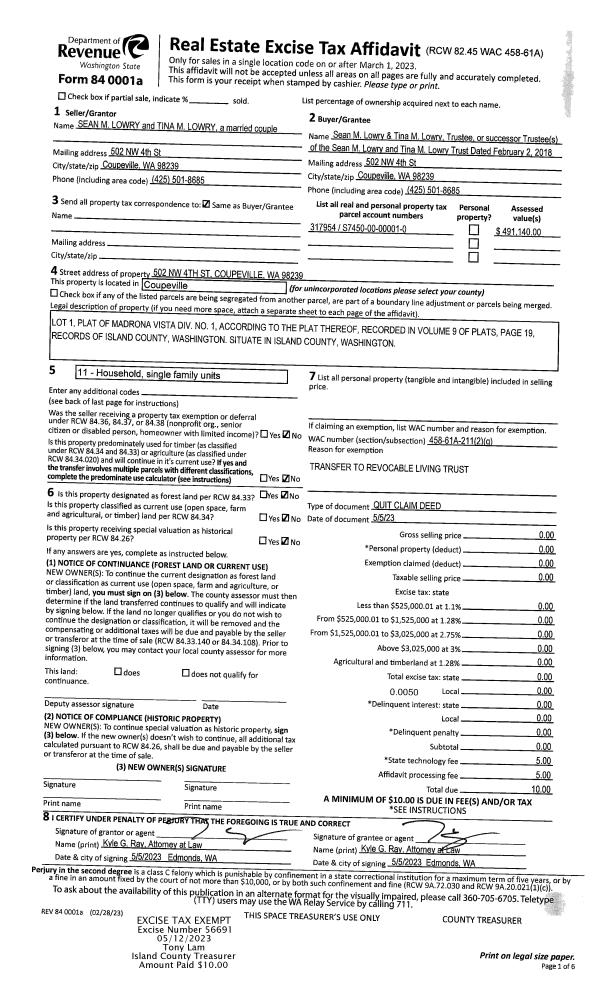 | Mailing Address: | 343 MELISSA ST CAMANO ISLAND, WA 98282-8635 | % Ownership: | 100.0000000000% |