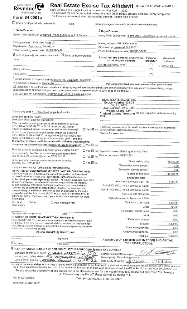 | Mailing Address: | 2277 WAGNER RD CAMANO ISLAND, WA 98282 | % Ownership: | 100.0000000000% |