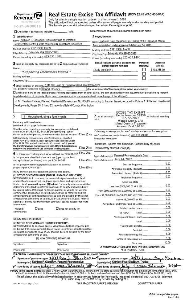 | Mailing Address: | 2237 WAGNER RD CAMANO ISLAND, WA 98282 | % Ownership: | 100.0000000000% |
