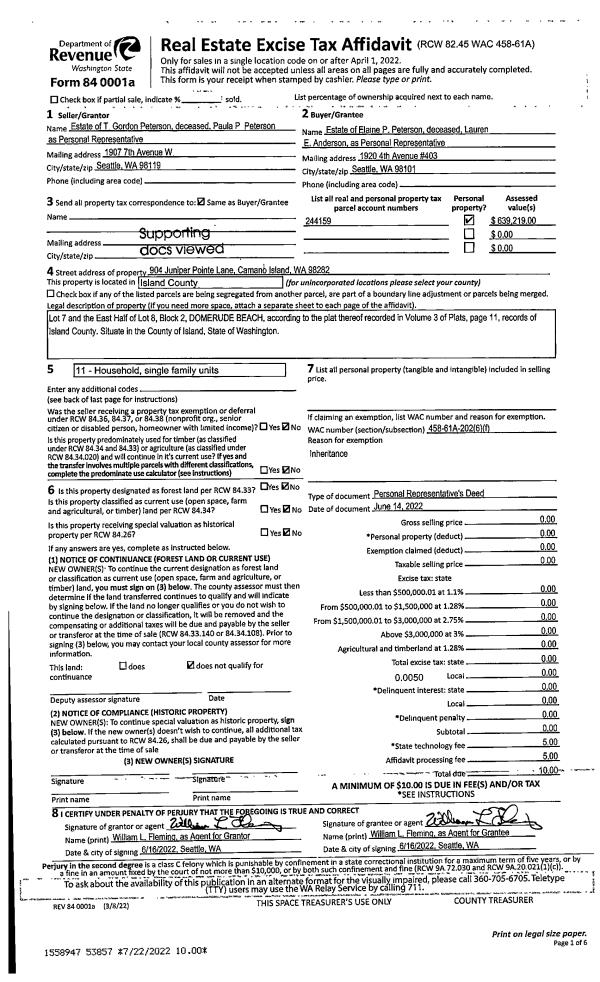 | Mailing Address: | 2237 WAGNER RD CAMANO ISLAND, WA 98282 | % Ownership: | 100.0000000000% |