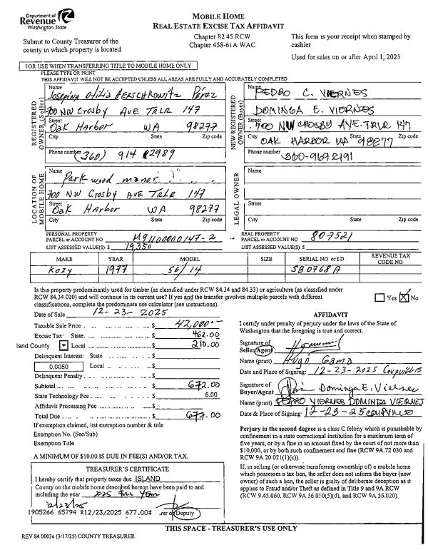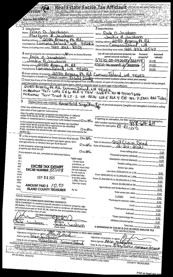 | Mailing Address: | 1041 ZYLSTRA RD COUPEVILLE, WA 98239 | % Ownership: | 100.0000000000% |