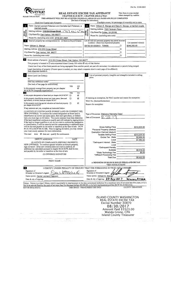 | Mailing Address: | 1356 PILCHUCK DR CAMANO ISLAND, WA 98282 | % Ownership: | 100.0000000000% |