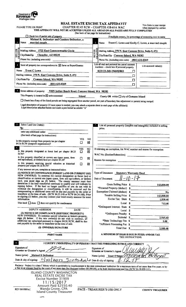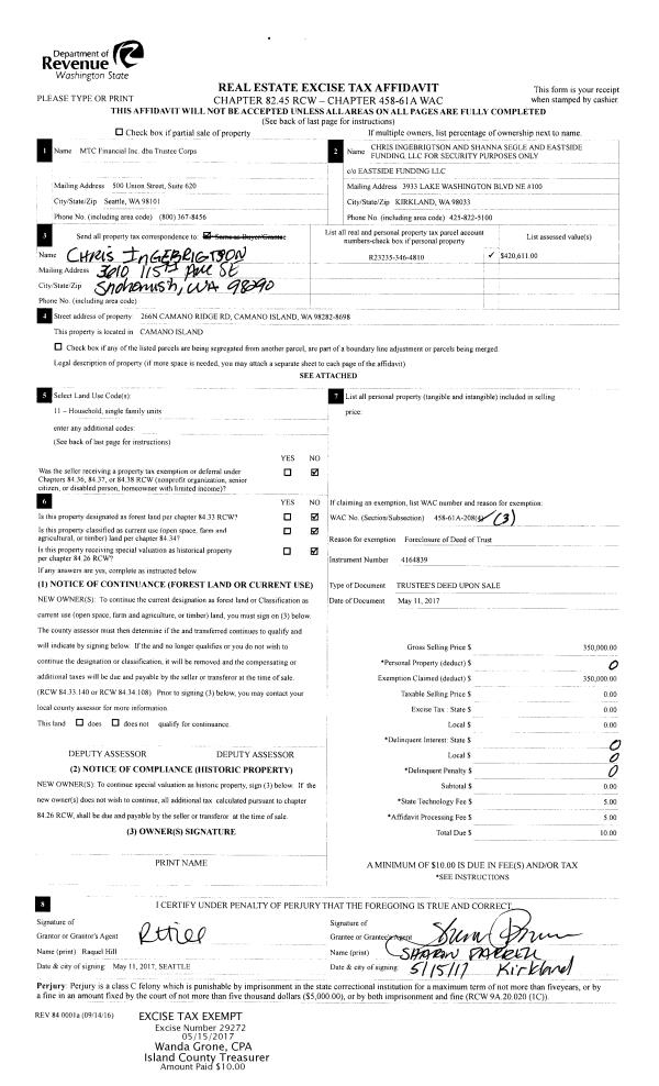 | Mailing Address: | 1360 PILCHUCK DR CAMANO ISLAND, WA 98282 | % Ownership: | 100.0000000000% |