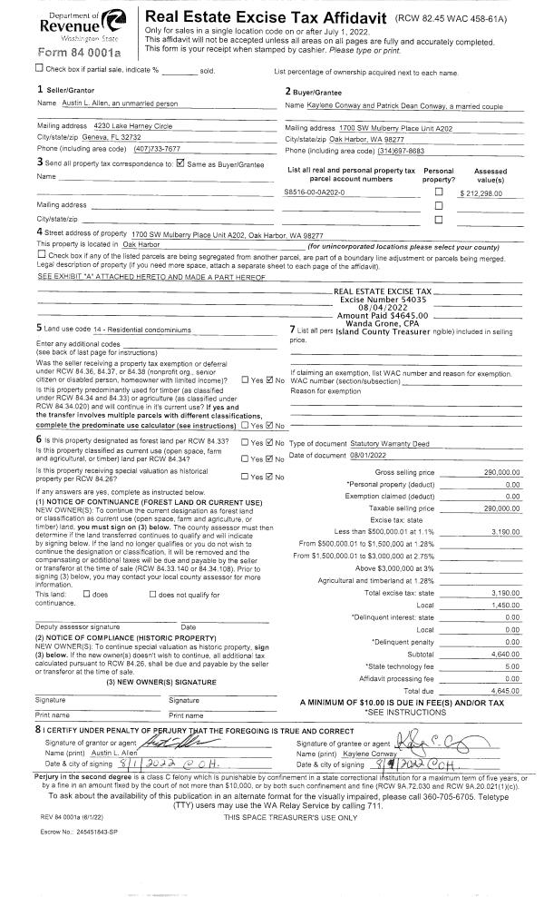 | Mailing Address: | DEBORAH LOUISE BEYKOVSKY 2306 CAMANO REAL PL CAMANO ISLAND, WA 98282 | % Ownership: | 100.0000000000% |