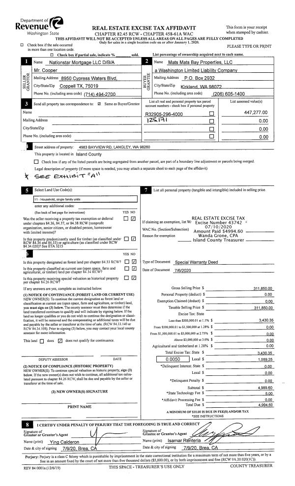 | Mailing Address: | LLOYD CARVO 1325 PILCHUCK DR CAMANO ISLAND, WA 98282 | % Ownership: | 100.0000000000% |