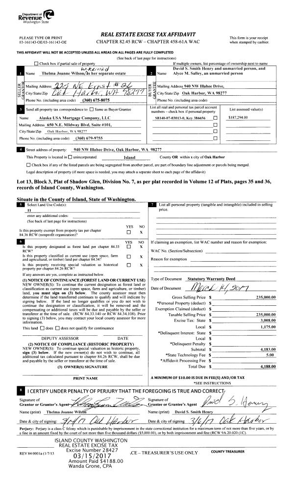 | Mailing Address: | ANNE C MILTON 26910 92ND AVE NW C5-#190 STANWOOD, WA 98292 | % Ownership: | 100.0000000000% |