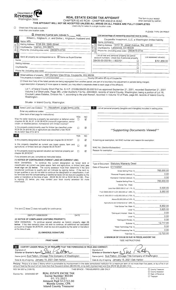 | Mailing Address: | JOY L LATIMER 266 HENNING DR CAMANO ISLAND, WA 98282 | % Ownership: | 100.0000000000% |