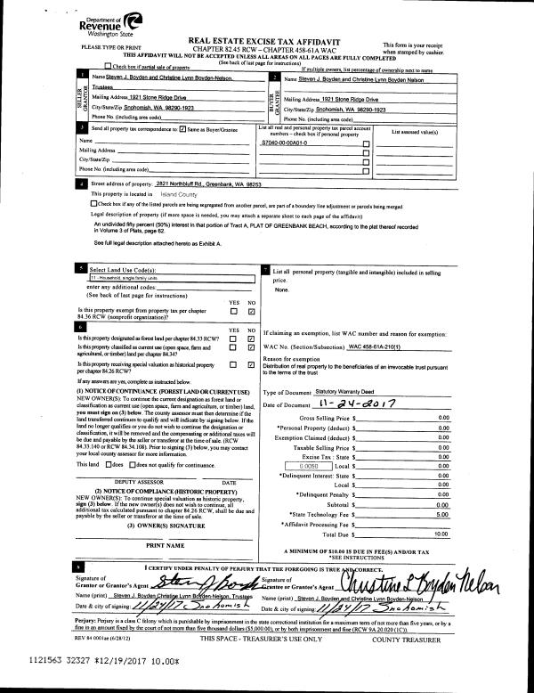 | Mailing Address: | 279 GRANDVIEW AVE CAMANO ISLAND, WA 98282 | % Ownership: | 100.0000000000% |