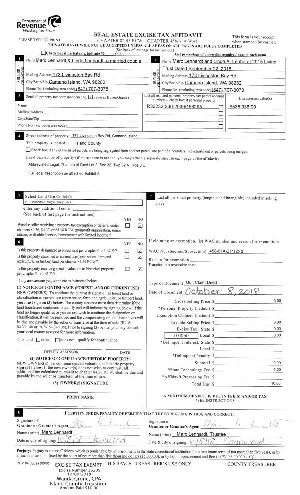 | Mailing Address: | 2161 VAN DAM RD COUPEVILLE, WA 98239-9778 | % Ownership: | 100.0000000000% |