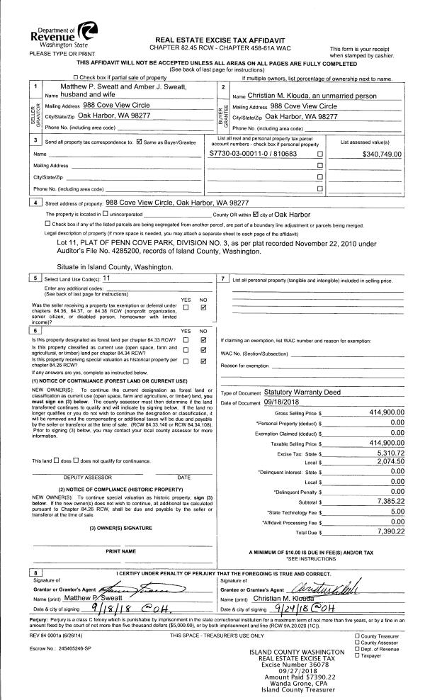 | Tax Area: | 710 - APPRAISER-S Whid Schl Dist, outside Langley, improved & 1 acre or less | Land Use Code | 11 |