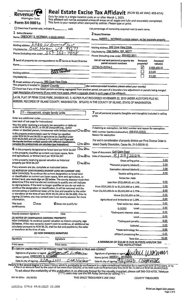 | 1 | 01/05/2023 | QCD | Quit Claim Deed | HARPER, STEVEN H | HARPER, STEVEN | | | $0.00 | 55666 | 4555895 |