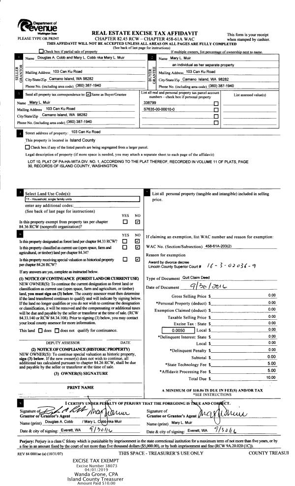 | POCOUP | Port of Coupeville GEN | 0.1093371703 | $542,848 | $542,848 | $59.35 | | |