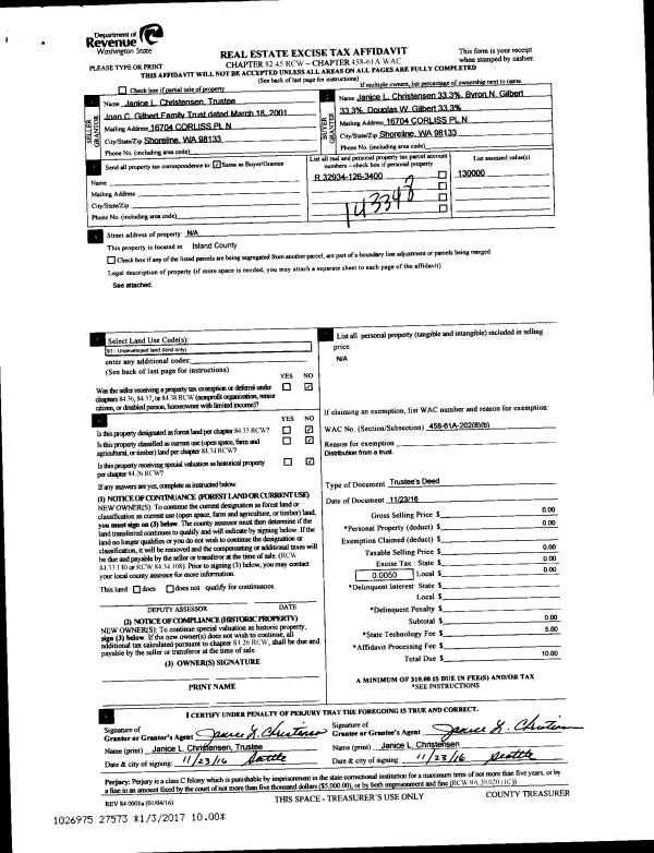 | Mailing Address: | PO BOX 1462 STANWOOD, WA 98292-1462 | % Ownership: | 100.0000000000% |