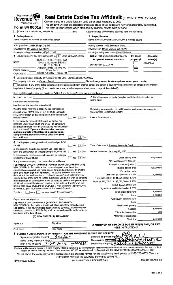 | Mailing Address: | ELIZABETH A. WALKER 4486 ALAMO WAY OAK HARBOR, WA 98277 | % Ownership: | 100.0000000000% |