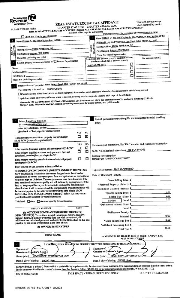 | Mailing Address: | 1202 NE LEISURE ST COUPEVILLE, WA 98239 | % Ownership: | 100.0000000000% |